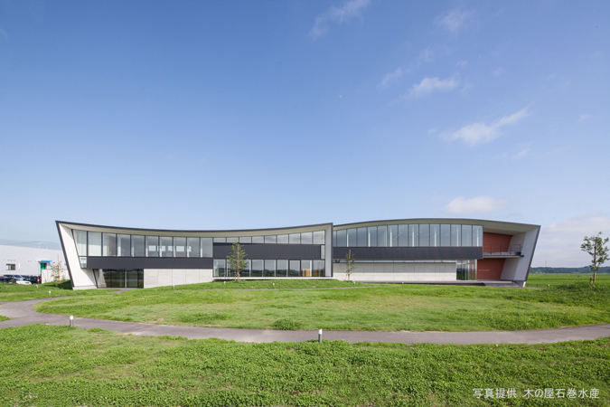全国からのたくさんの支援や国からの支援もあり、震災から2年経った2013年に新設した美里町工場の外観デザインは、鯨をイメージ。建物の周りには柵はなく、美里町の田んぼと青空の中をまるで鯨が泳いでいるような美しい建築物です。