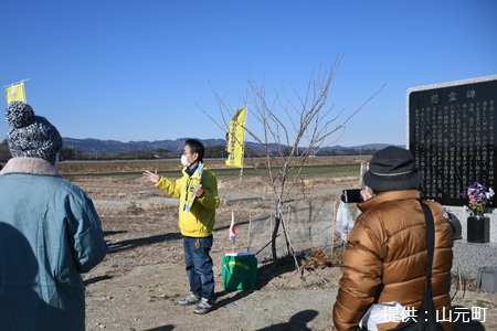 「山元案内人」として、町の歴史や資源、防災への心構えを知ってもらうように町内を案内しています。とくに若い世代の防災・減災意識を高めることに力を入れています。